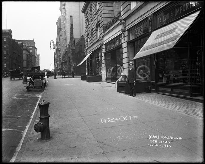 [7th Avenue and West 58th Street, looking north to Central Park.]