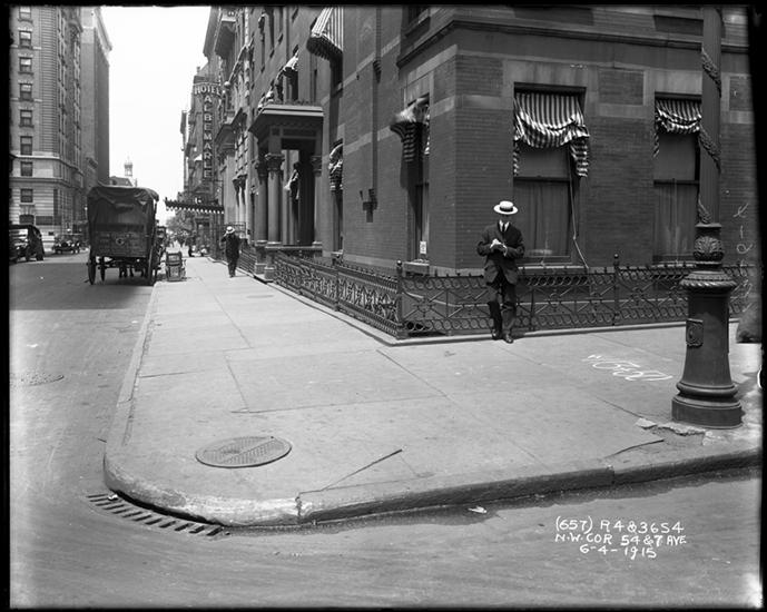 [7th Avenue and West 58th Street, looking north to Central Park.]