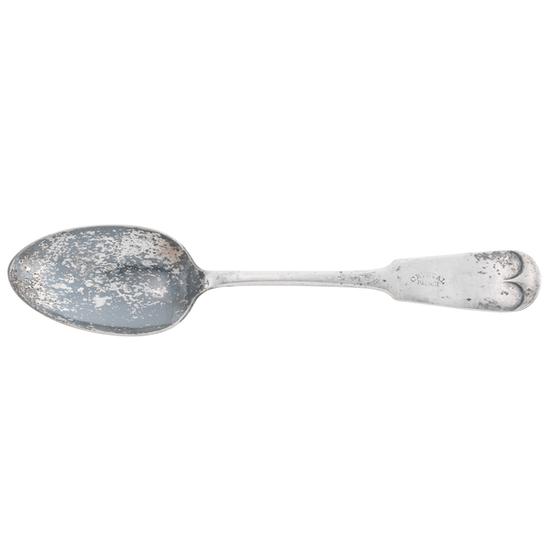 Tablespoon with upturned front tipt fiddle handle continuing to egg-shaped bowl. Origin attributed. Inscription: Stamped on handle obverse: CRYSTAL / PALACE. Mark: Marked on handle reverse: S.H.M. & Co. X.