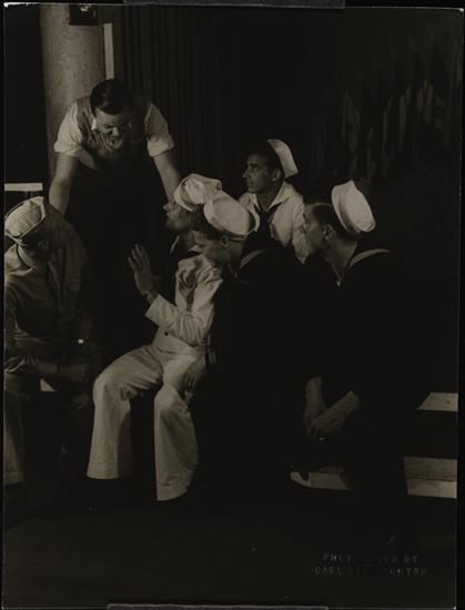 Stage Manager Russ Mitton Pushing Service Men Off the Stage (Stage Door Canteen).