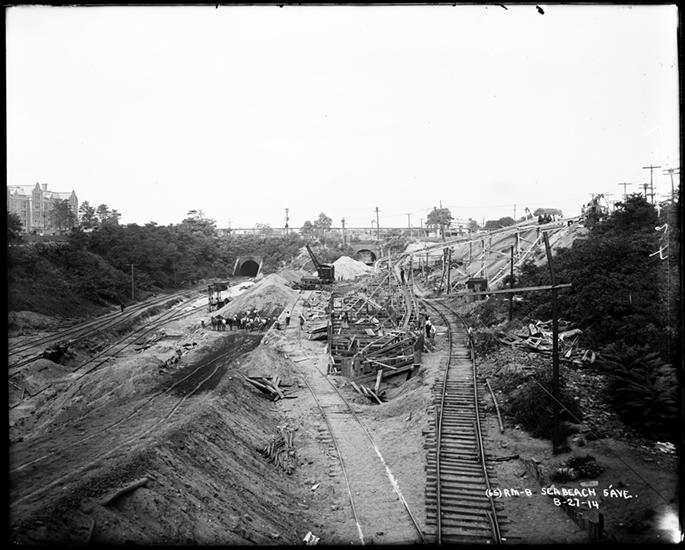 Sea Beach Line cut supporting building foundation, Fort Hamilton Parkway.