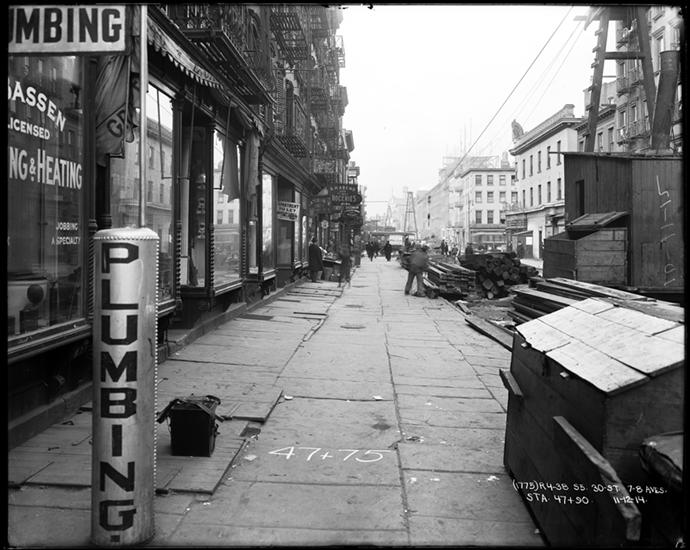 [7th Avenue and West 58th Street, looking north to Central Park.]