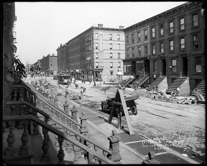 Sea Beach Line and Long Island Railroad at 5th Avenue, looking west to 4th Avenue.