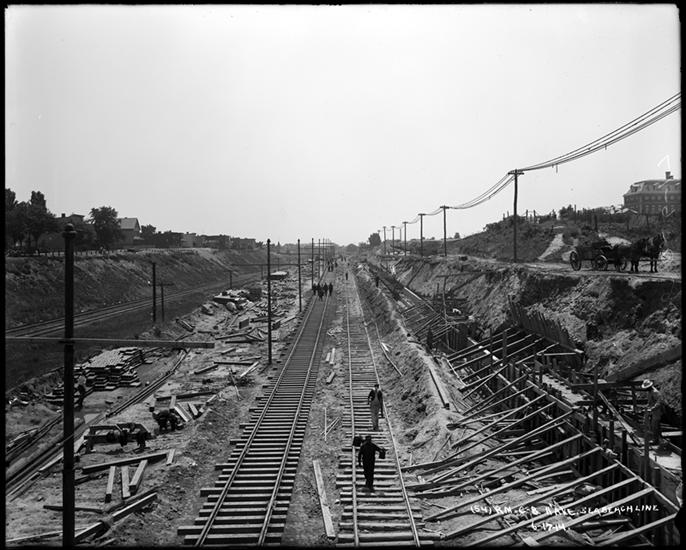 Sea Beach Line cut supporting building foundation, Fort Hamilton Parkway.