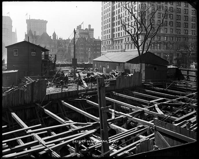 Sea Beach Line cut supporting building foundation, Fort Hamilton Parkway.