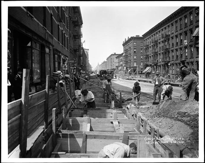 Subway tunnel construction at Lexington Avenue and 97th Street.