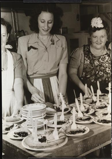Kitchen Workers Betty Bernard, Mrs. Wormser and Mildred Wall (Stage Door Canteen).