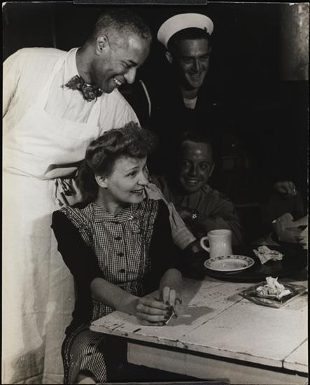 Lucien, Sailor on the French Battleship Richelieu, Busboy Scott Edwards and Junior Hostess Shirley Booth (Stage Door Canteen).