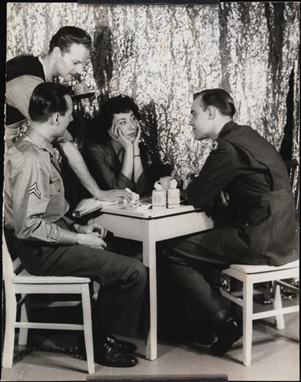 Junior Hostess Janet Fox, Sergeant Richard Mulligan, Busboy Maurice Minnich, Corporal William Roney, U.S.C.G. Frank Piro (Killer Joe) (Stage Door Canteen).