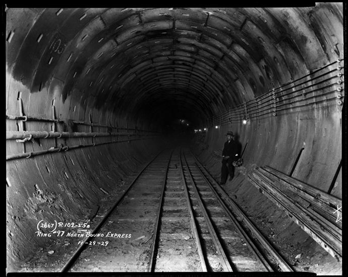Sea Beach Line cut supporting building foundation, Fort Hamilton Parkway.