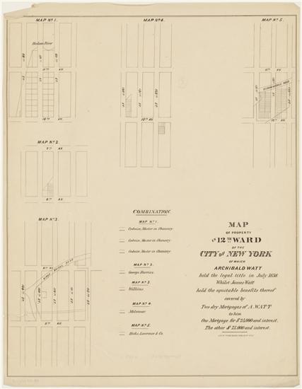 Map of Property in 12th Ward of City of New York of which Archibald Watt Held Legal Title in July 1838, Whilst James Watt held the Equitable Benefits Thereof Covered by Two Dry Mortgages of A. Watt to