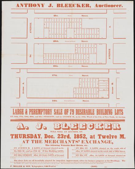 Executors' Sale of 82 Lots and Parts of Lots, Situated on 83rd & 84th Sts., and on Avenues A & B