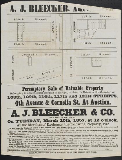 Auction Sale of 225 Harlem Lots by A. J. Bleecker & Co.