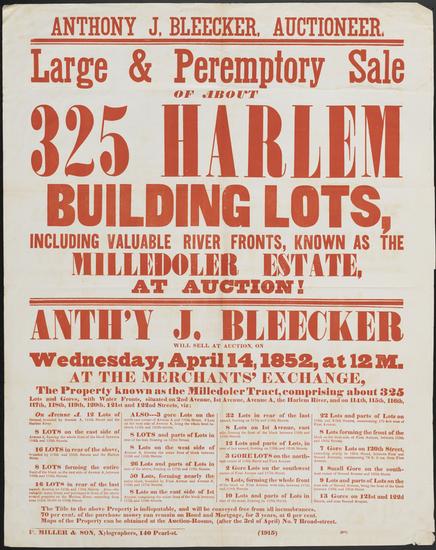 Auction Sale of 225 Harlem Lots by A. J. Bleecker & Co.