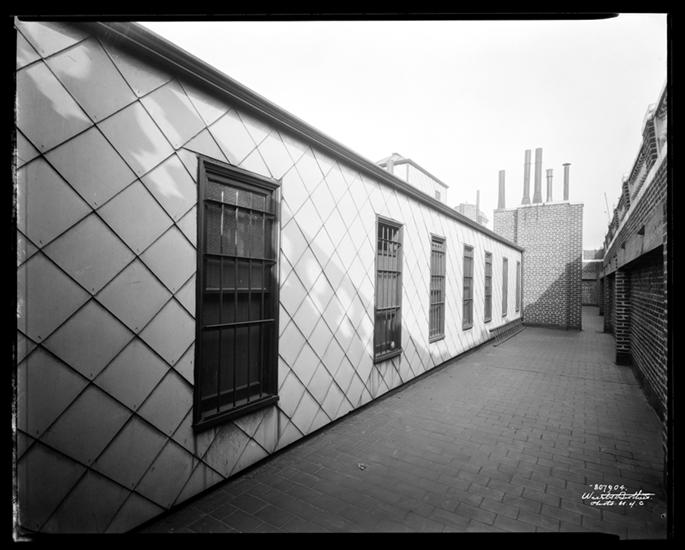 666 Park Avenue. Ecker Apartments showing bathroom walls with square yellow black base.