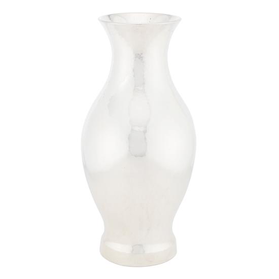 Fine silver handwrought vase with baluster-shaped body, everted lip, and straight-sided base. Mark: Struck on underside of base, incuse: 2Ts / TS / FINE SILVER / HANDWROUGHT (rubbed) / 1949 / 2 / HANDWROUGHT.