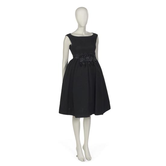 Cocktail ensemble in black silk twill comprising dress and jacket
