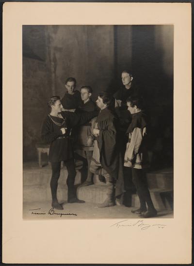 [Frederick Lewis as Horatio, John Barrymore in the title role, and E. J. Ballantine as Marcellus in "Hamlet".]