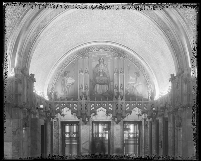 Woolworth Building, basement room over swimming tank, view from entrance.