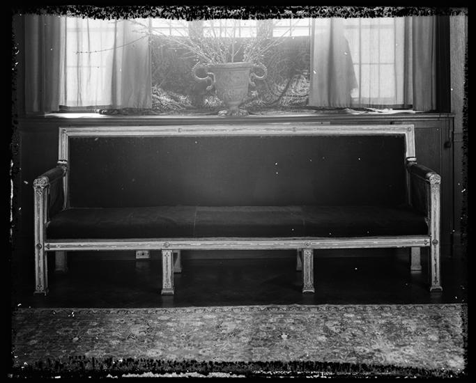 [Residence. Interior, with chair and bench.]