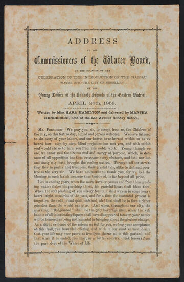 Celebration of the Introduction of the Nassau Water, City of Brooklyn