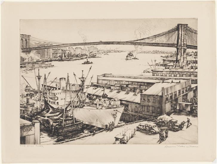 The East River. Showing Brooklyn and Williamsburgh Bridges.