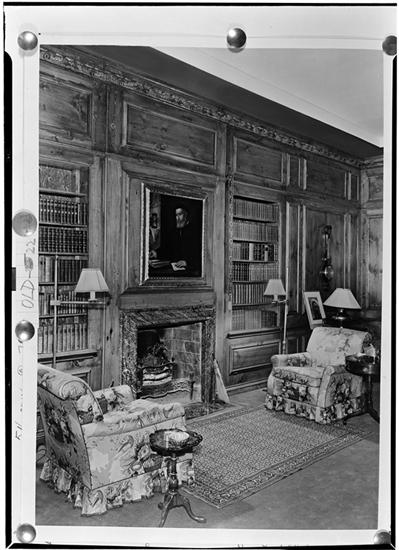 Bruce Barton [residence]. Library to fireplace.