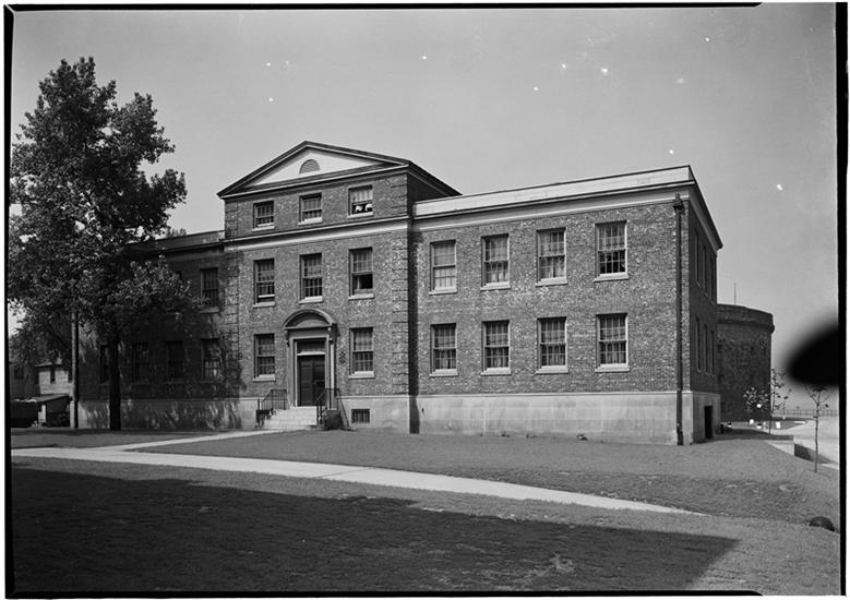 Officer's apartments, Governors Island, N.Y. Sharp street view from left.