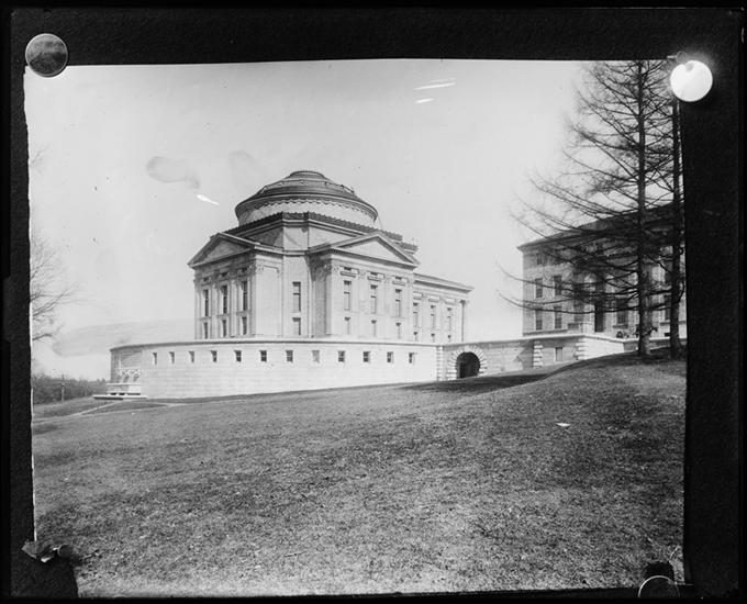New York University Library. Facade and side, also showing part of the Hall of Language.