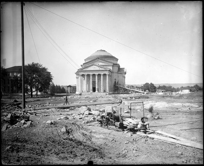 New York University Library. Facade and side, also showing part of the Hall of Language.