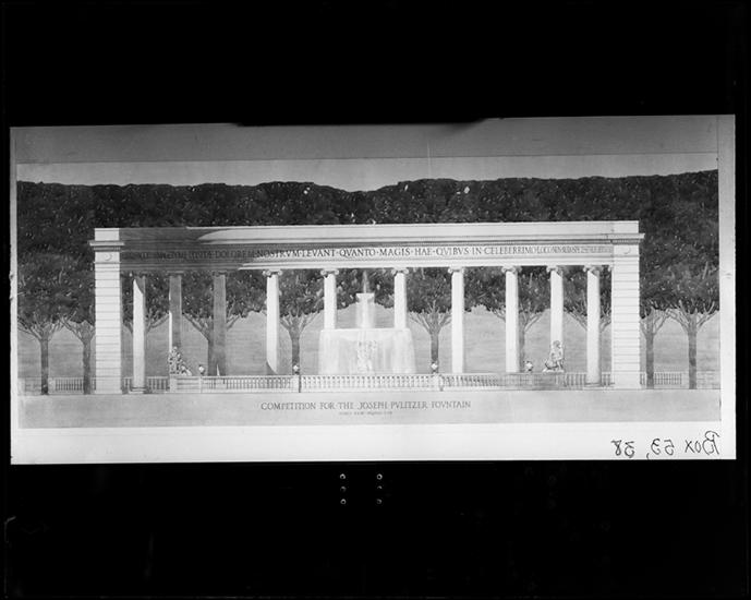 Joseph Pulitzer Fountain competition. North elevation of plaza, rendering, 1/16" = 1'.