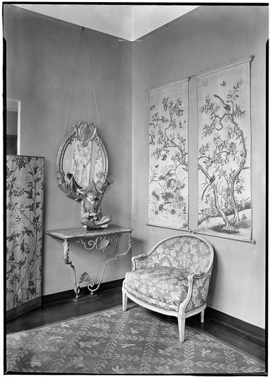 Isabella Barclay [residence]. Ebony commode and Chinese panel.