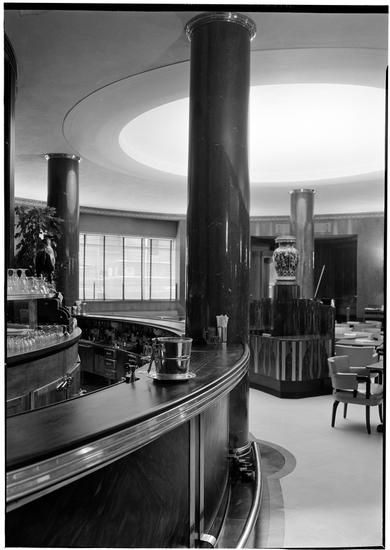 Waldorf-Astoria Hotel. Men's Bar. Large veneer panelling above table.