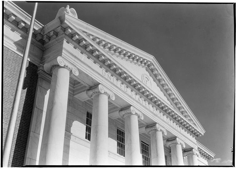 Post Office Building. Flushing, Long Island, [Queens]. Portico detail.