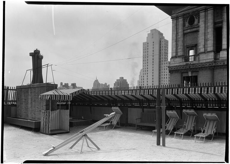 277 Park Avenue [Building]. Sandbox with children, looking out.