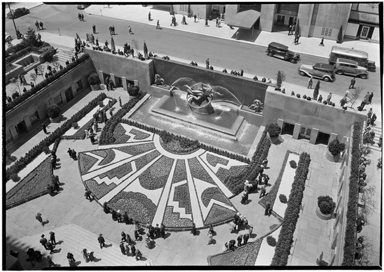 Rockefeller Center. City Garden Club and fountain axis from above.