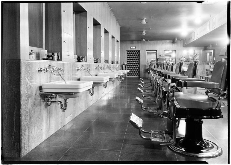 RCA Building, Barber Shop. Detail of rear cash desk.