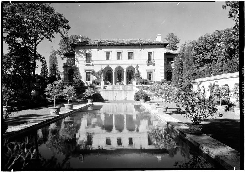 Anthony Campagna [residence]. East corner of house reflected in pool.