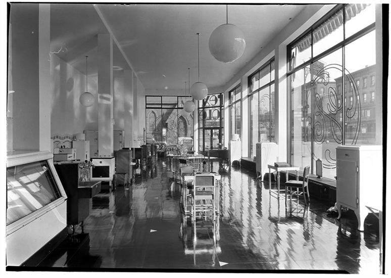 Rex Cole [Building]. Salesroom down entrance aisle.