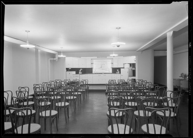 Rex Cole [Building]. Salesroom down entrance aisle.