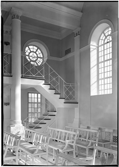 Velma B. Woolworth Memorial Church, Woodlawn Cemetery. Diagonal view to staircase.