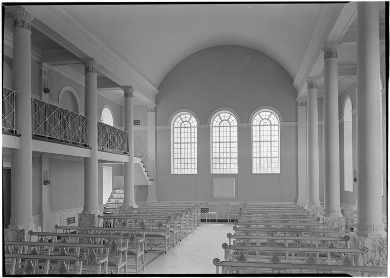 Velma B. Woolworth Memorial Church, Woodlawn Cemetery. Diagonal view to staircase.
