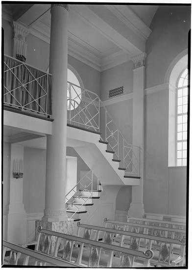 Velma B. Woolworth Memorial Church, Woodlawn Cemetery. Diagonal view to staircase.
