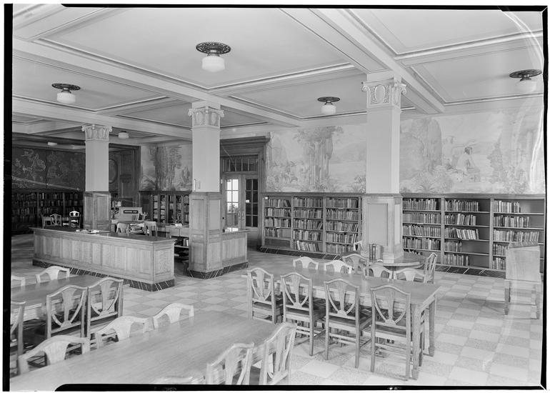 [Queensboro] Central Library, Jamaica, [Queens]. Murals in small library (children's).