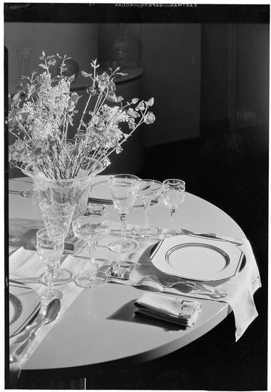 Steuben Glass, Inc. Conference Room, table set with glassware.