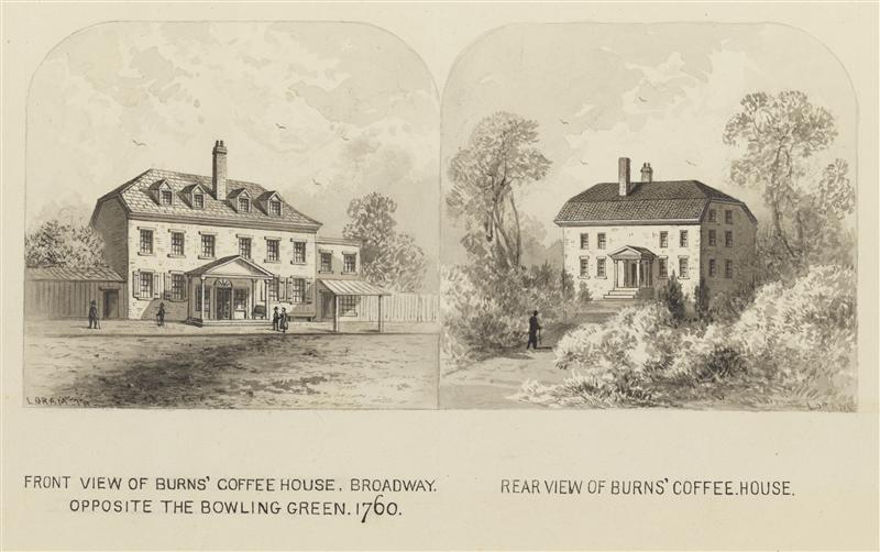 Front view of Burns' Coffee - House, Broadway, Opposite the Bowling Green, 1760