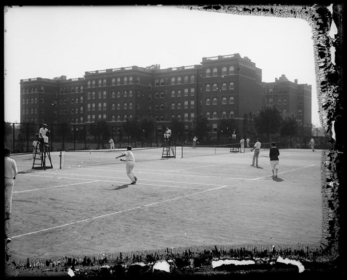 [Hayes Boulevard. Tennis courts and Chateau apartments.]