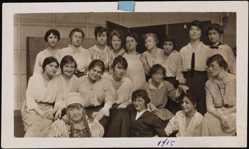 East 8th Street and Third Avenue. Cooper Union; women students working with textiles