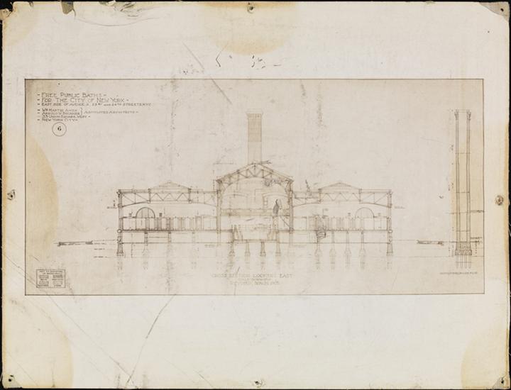 [Free public baths, east side of Avenue A, 23 and 24 Streets, rear elevation.]