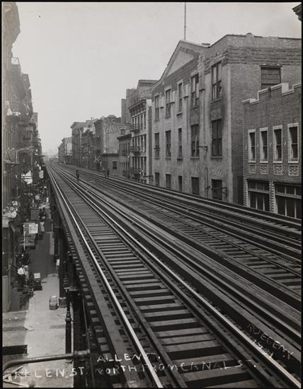 Looking Down on Rivington Street from Allen Street Elevated Station.